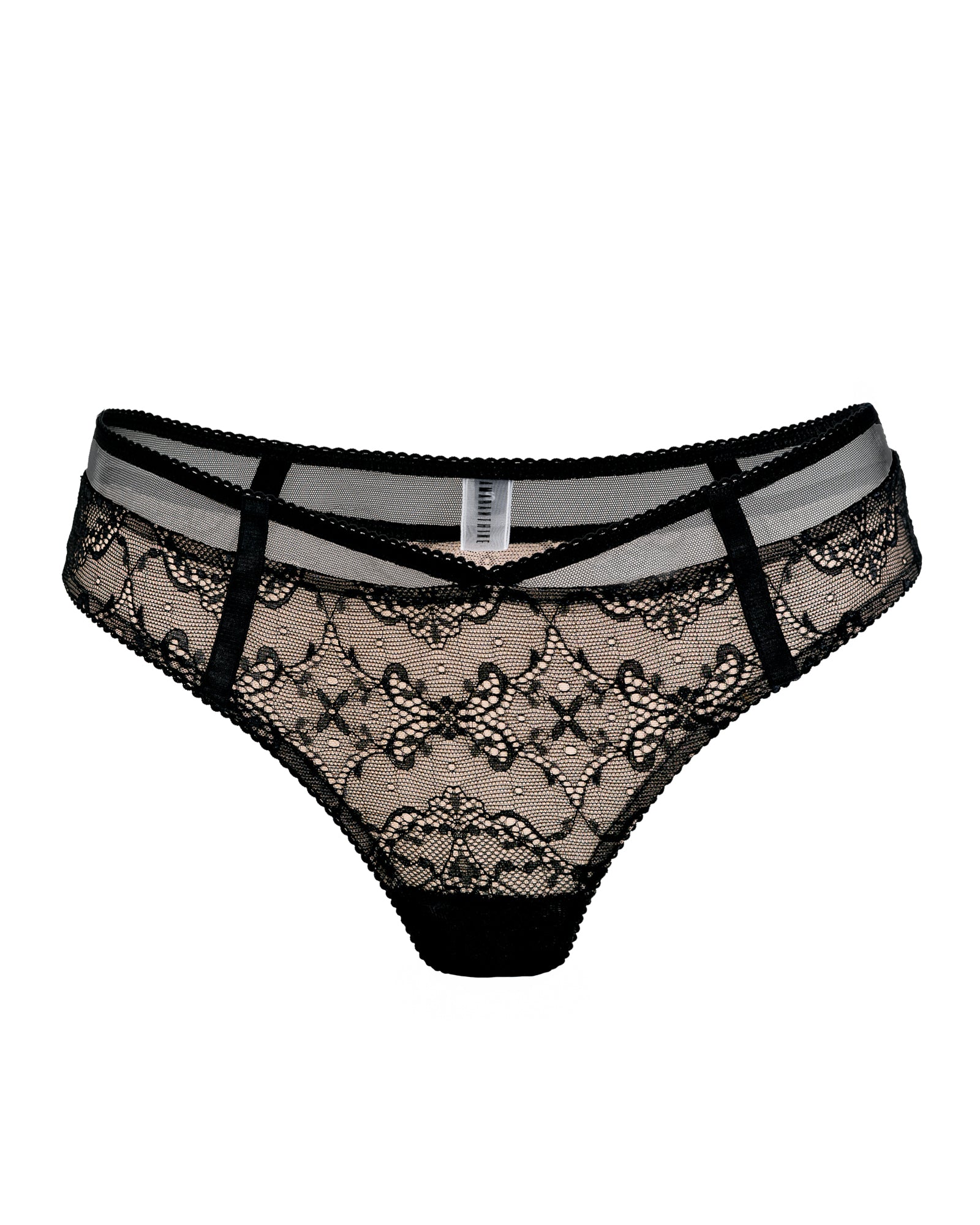 A modern classic with a sensual twist, the Tita Briefs are cut in a flattering low-rise silhouette with a cheeky back. Made in Italy from sheer embroidered lace and tulle, featuring bold elastic trims that contour the hips without digging in. The back reveals a seamless finish that accentuates natural curves while maintaining all-day comfort.